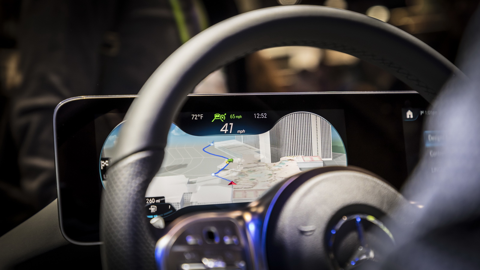 Mercedes says that the voice control works with natural speech recognition and is activated by simply saying “Hey Mercedes”. The language assistant’s ability to identify indirect speech means that the user can say things like “I am cold” instead of the clear command “Temperature to 24 degrees” in order to operate the climate control.