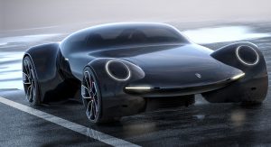 That includes design cues such as a pair of round headlights, a gently rounded nose, a long front hood, an upright windscreen and a rear end sloping down to an enveloping strip of taillights. The muscular rear haunches also look like a suitable evolution of the 911, and Gauvin has even gone so far as to envision placing the main battery pack all the way at the back to preserve the 911’s signature position of the engine.