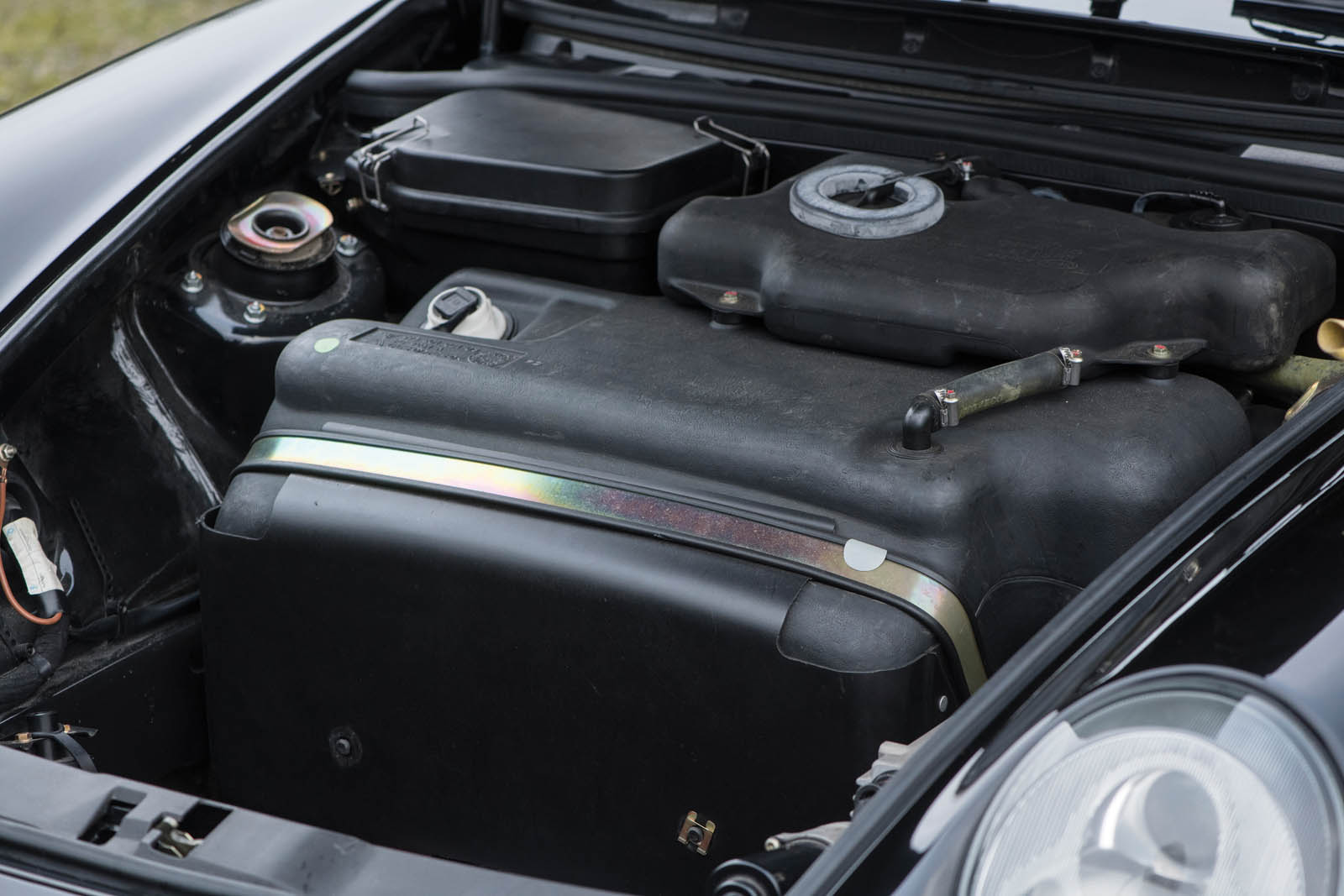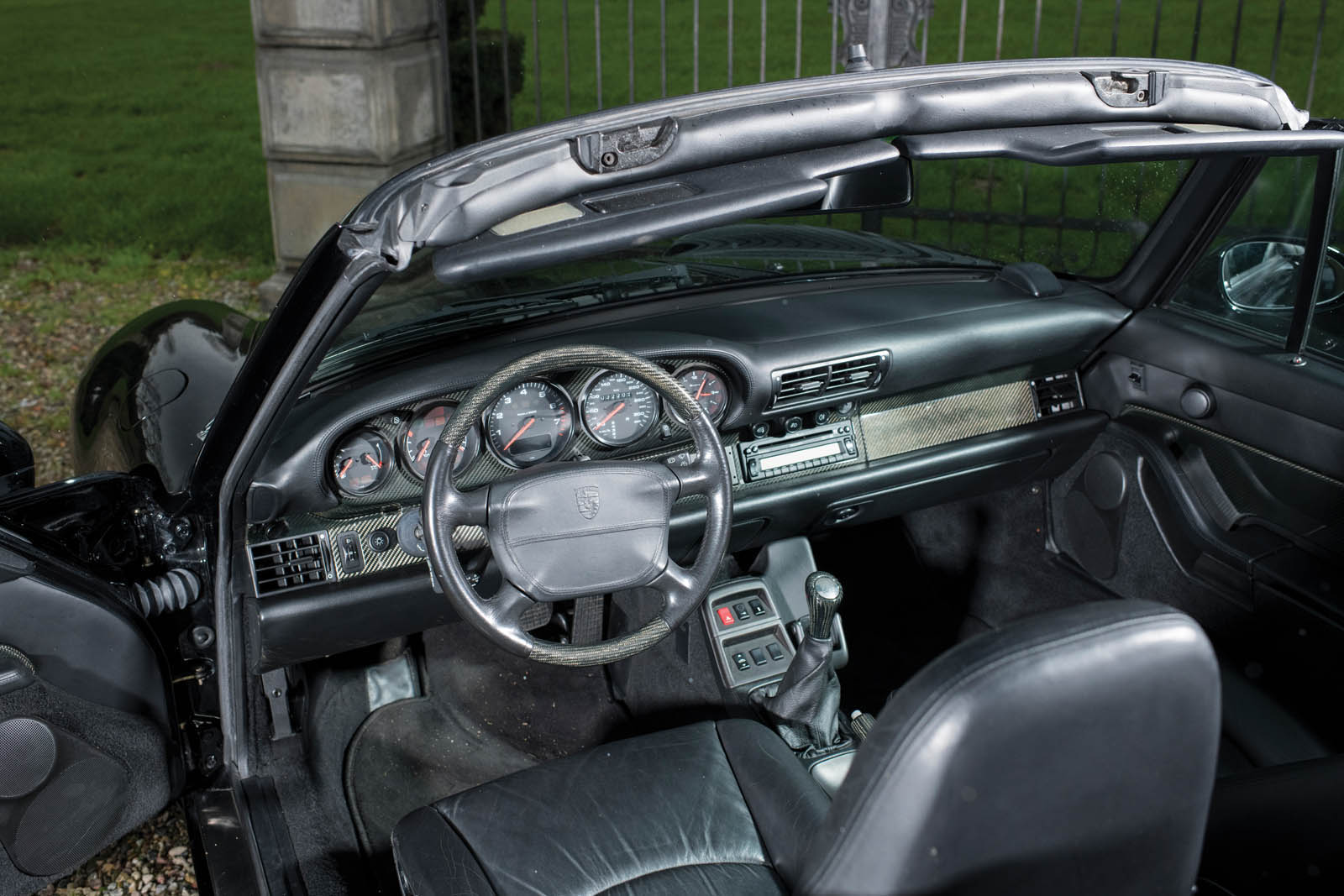 The asking price wasn’t enough, at any rate, to deter Willi Weber. Michael Schumacher’s longtime manager is believed to have been this example’s original owner, ordering it in black over black with a burgundy soft-top and a clutchless gearbox from Ruf. Whoever the original owner, he didn’t keep it for long: the current owner has had it since 1997 – just two years after it was made – and has reportedly spared no expense in keeping it up.