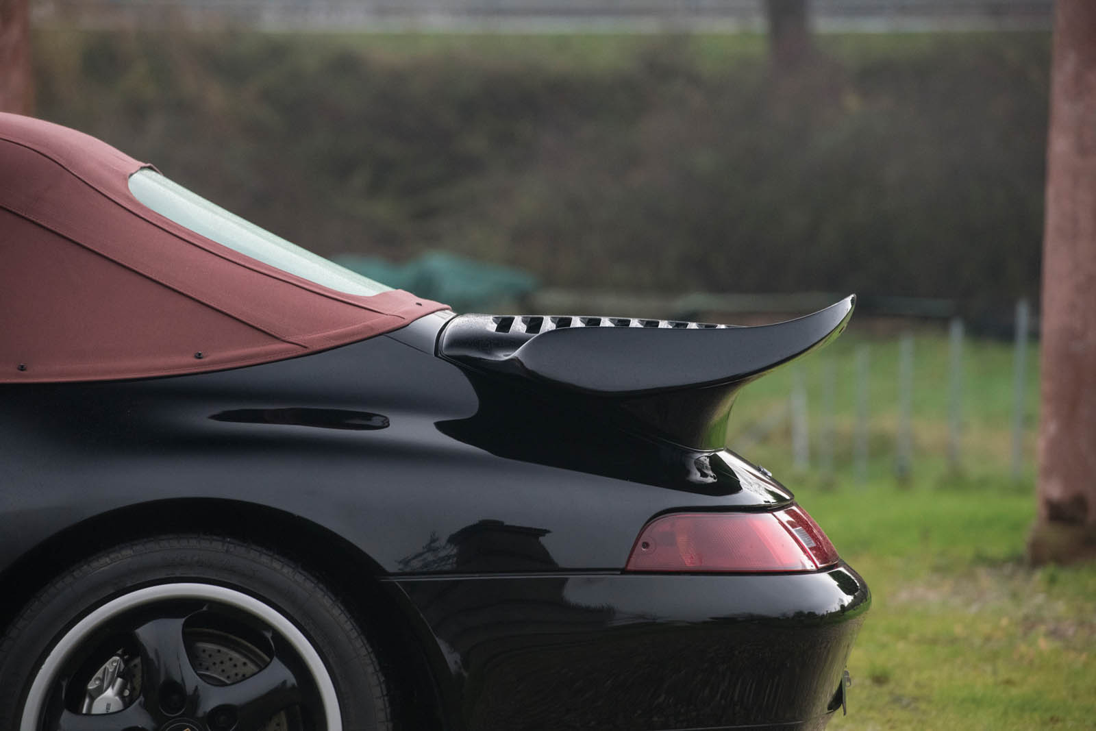 Developed before the 993 Turbo coupe appeared, the Turbo Cabriolet blended the chassis of the 993 Cabriolet with the engine from the older 964 Turbo: a 3.6-liter boxer six with a single turbocharger – making this the last air-cooled turbo cab. It also received a wider rear end and the spoiler from the 964 Turbo S, but the more stable multilink rear suspension from the 993.