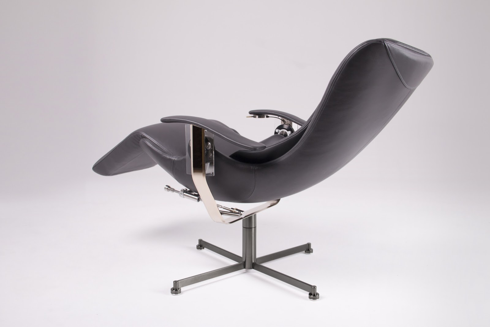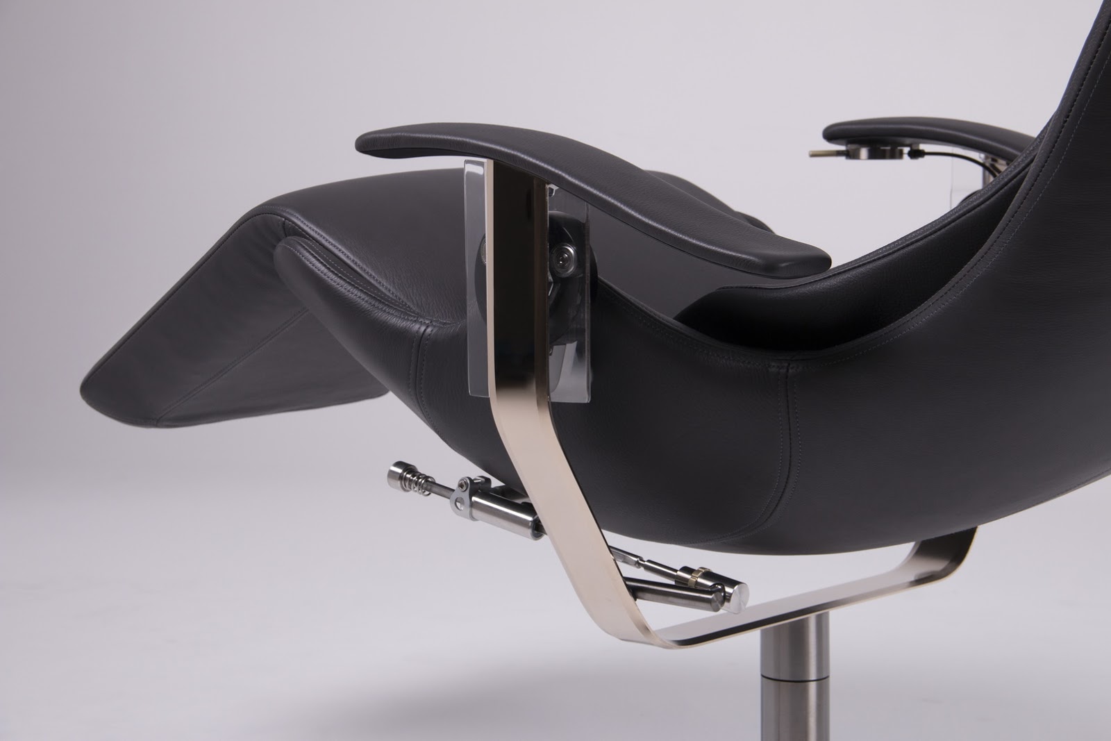 The technology that controls the chair’s movements actually comes from a mathematical model written by its designer and founder, Dr David Wickett. Once you sit in it, you can manipulate it into your ideal position by simply shifting your weight around, similar to how a rider can gently alter the path of his motorcycle.