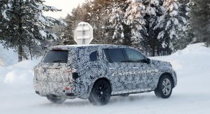 Dressed in heavy camouflage, the redesigned crossover doesn’t reveal much but the photos show the GLS will have a massive grille and LED headlights. Additional styling details are hard to make out but it appears the model will have more curvaceous bodywork and pronounced fender flares.