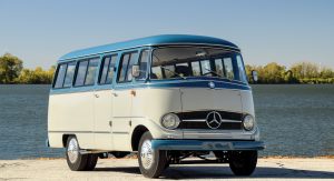 Expected to fetch $175,000-$200,000, the 1959 Mercedes-Benz O 319 features a modern direct-injected engine from the German brand, married to an automatic transmission, and air-ride suspension adapted to the stock dual rear-wheel setup.