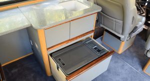 Some of the details that should make the purchase even more interesting are the centralized circuit-breaker panel and lighting for every cubby and compartment upon opening, propane and water tanks installed underneath the body, and meticulous plumbing and electric work.
