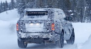 Now, while this prototype appears to have four doors, a closer look at the camouflage indicates that those rear door handles might be fake, judging by the wacky rear door lines and the rear wheel arch. Basically, there seems to be very little room for a rear door.
