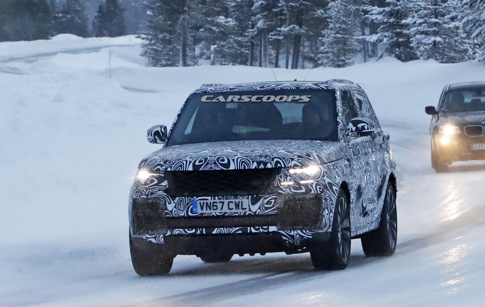 When viewed from the front, despite the camouflage, this looks like a regular Range Rover. The rear however is clearly more sporty thanks to the sloping roofline. There’s also no indication that the taillights are any different than on a regular 2018 Range Rover.