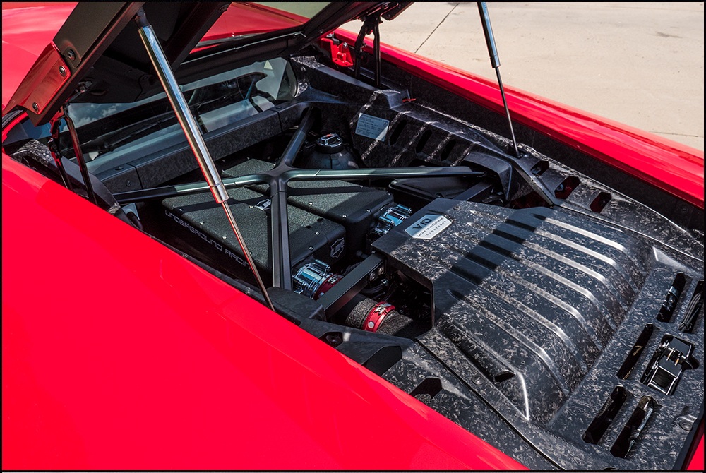 This Huracan has a twin-turbo upgrade, which together with other work carried in the engine compartment allows it to produce almost twice its initial output, namely 1,200 horsepower. Mind you, that’s on pump gas; fill its tank with VP import race gas and the tuner claims the supercar will put down a whopping 2,500hp!