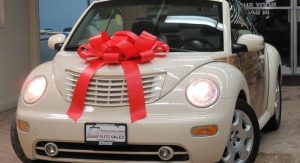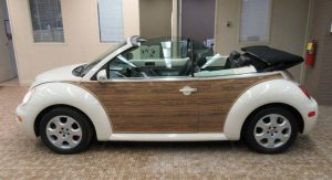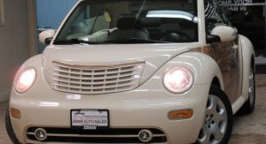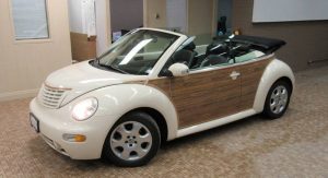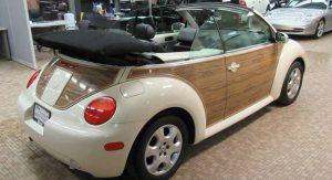 The eBay listing of this 2003 VW Beetle suggests that the car is the rare “Woody Edition” but in reality, it is just a horrific cream-colored Beetle convertible with styling inspired by the Chrysler PT Cruiser, an ugly vehicle in its own right.