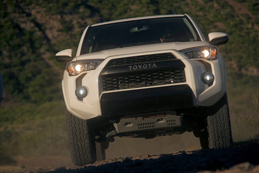 Other features of the 2019 4Runner TRD Pro include a new roof rack, a 1/4-inch-thick front skid plate and a set of 17-inch matte-black TRD alloy wheels with an offset change to widen the tracks front and rear by nearly 1 inch. The alloys are also shod in Nitto Terra Grappler P265/70R17 A/T tires.