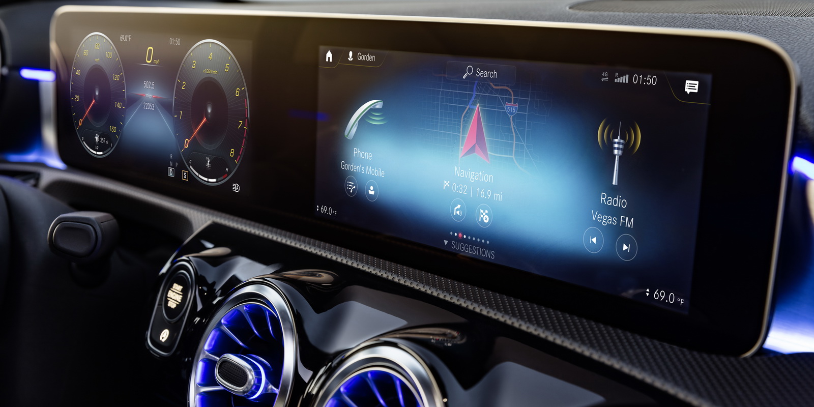 It features a progressive front-end design with a low bonnet and flat LED headlights, larger wheel arches, slimmer taillights and a sharper profile, whereas the interior is a lot more modern thanks to the massive MBUX dual-touchscreen layout, as well as the ambient lighting that’s available and lets you choose between 64 colors.