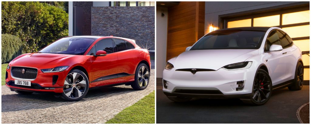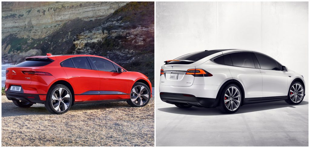 At the front, both models keep things familiar, with the I-Pace getting the signature Jaguar treatment and the Model X looking clean and minimalist, like all Teslas do.