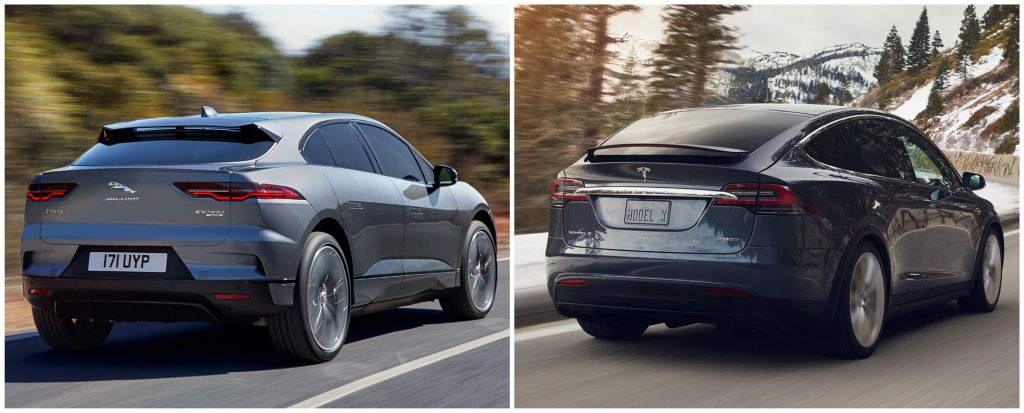The same goes around the back, with the I-Pace adopting sharp edges and slim taillights, whereas the Model X keeps it curvy but friendly.