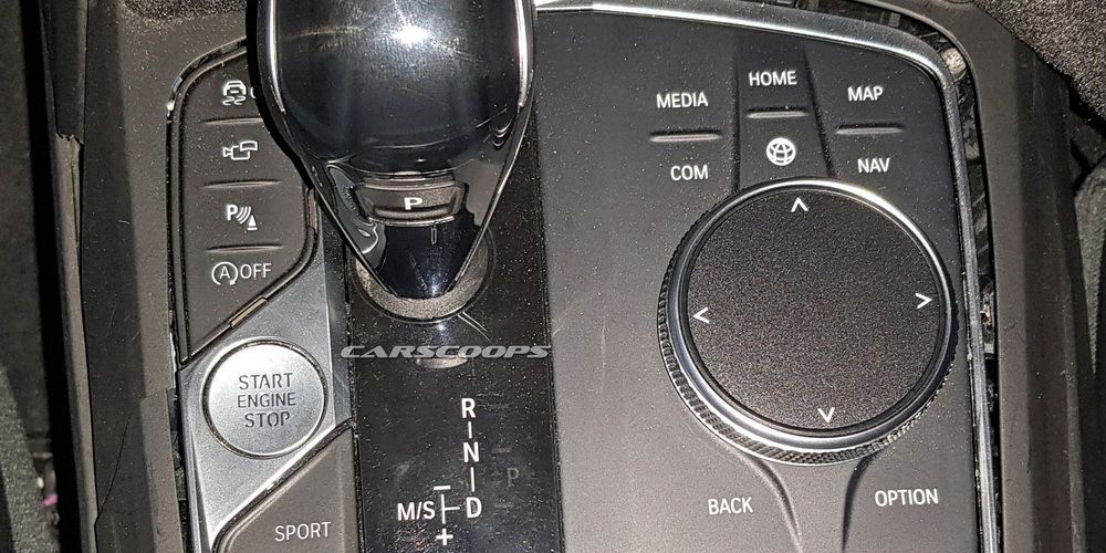 There’s a new digital gauge display, which we already knew about, plus a new shifter design, considerably smaller than what we’re used to seeing in other BMW models. It’s actually the same knob found inside the new 8-Series Coupe and the new X7, both of which feature the exact same center console design as the G20 3-Series, a design first seen on the 8-Series Concept.
