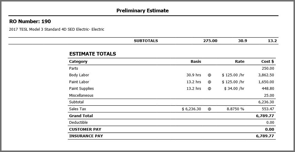 Boylan took his Tesla Model 3 to Precision Autoworks, one of the only few Tesla-authorized repair shops in New York, and decided to file an insurance claim in order to fix the small dent. After a few days had passed with no updates, Boylan asked his insurance company what was the hold-up. “Well the shop’s estimate was a bit higher than we expected.” How much higher? “Nearly $7,000, of which $5,000 was labor.”