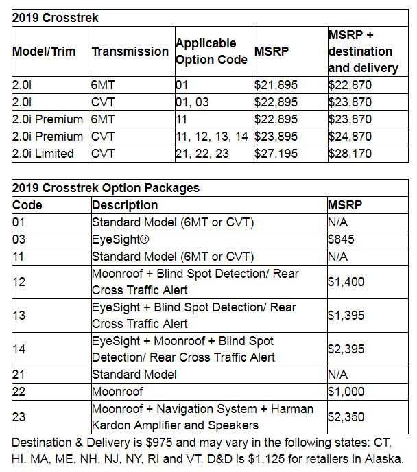 Starting with the entry-level Crosstrek 2.0i, pricing starts at $21,895 which is a minor increase of $100. Changes are minimal but customers can order a new package on base models equipped with the CVT transmission.