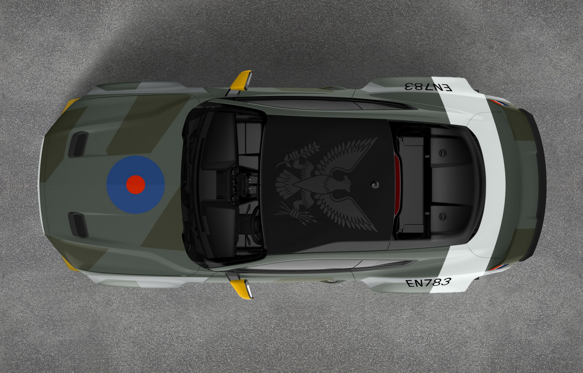 Created as a collaboration between Ford Performance and RTR Vehicles, it sports a special exterior livery that takes inspiration from the fighter planes of the WWII. Thus, it features the RAF roundel on the hood, white stripe that spans across its width at the rear, and several shades of green on the rest of the body.