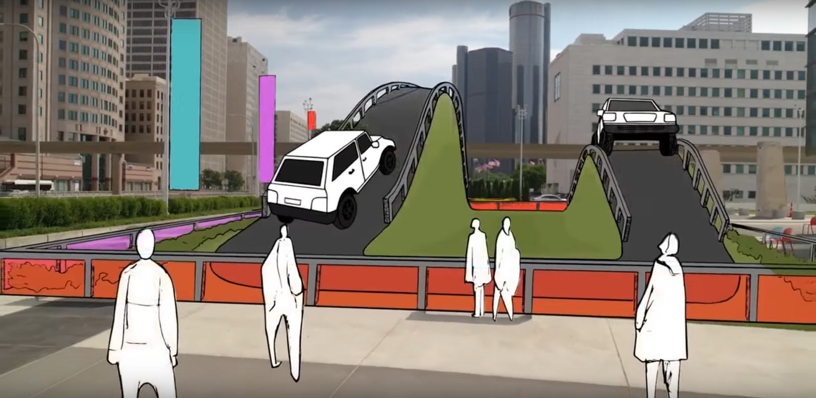 The clip doesn’t reveal much but it suggests the show will offer a handful of new outdoor activities. As you can see, there’s an off-road driving course near the entrance of Cobo Center and a larger track located on top of the center’s parking garage.