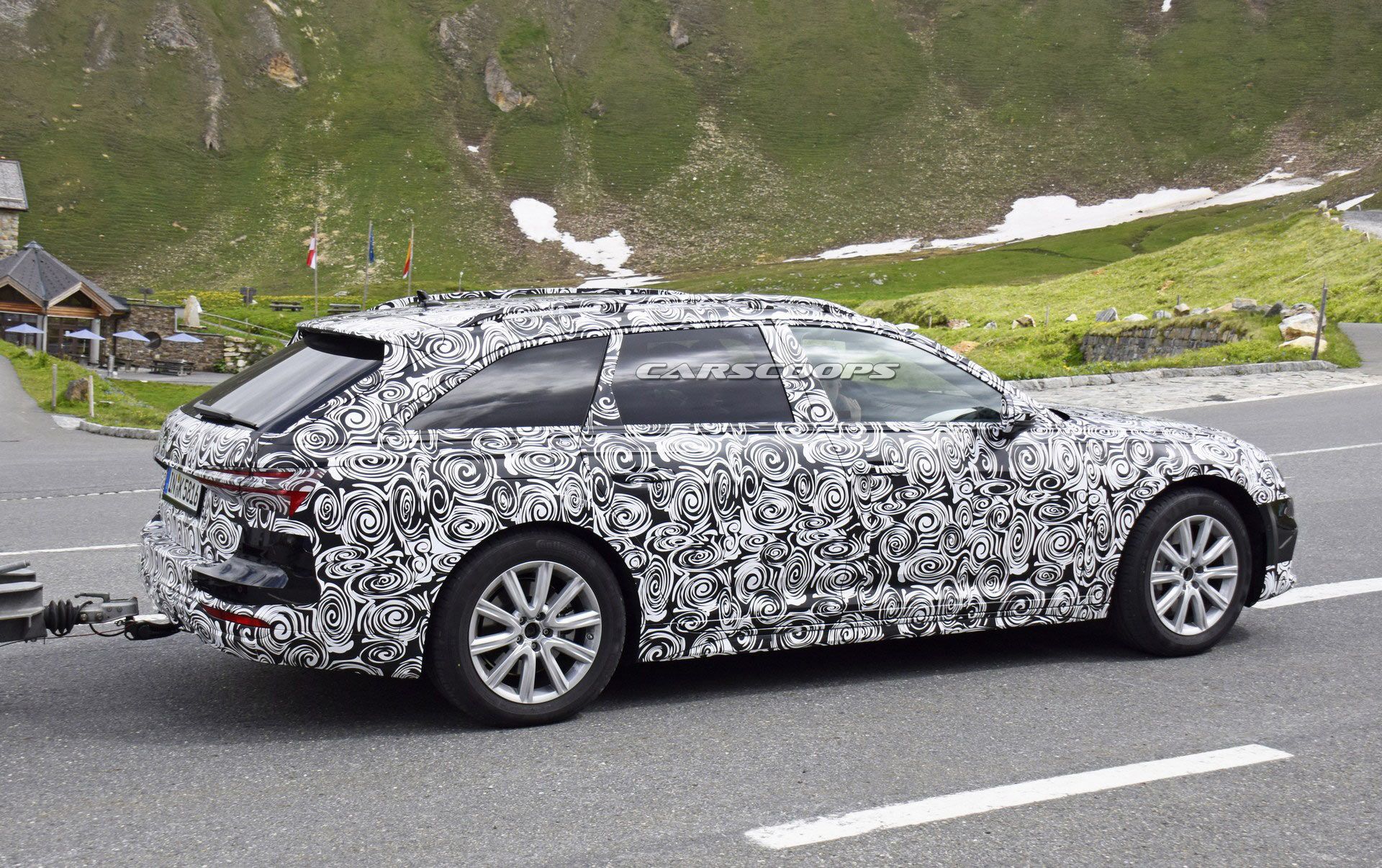 Based on the A6 Avant, the Allroad has a familiar design but it has been equipped with an assortment of subtle styling features that set it apart from the traditional wagon. While the car is heavily camouflaged, we can it has plastic fender flares and unique side skirts. A closer inspection also reveals an increased ride height and a modified rear bumper which is partially hidden by the prototype’s trailer.