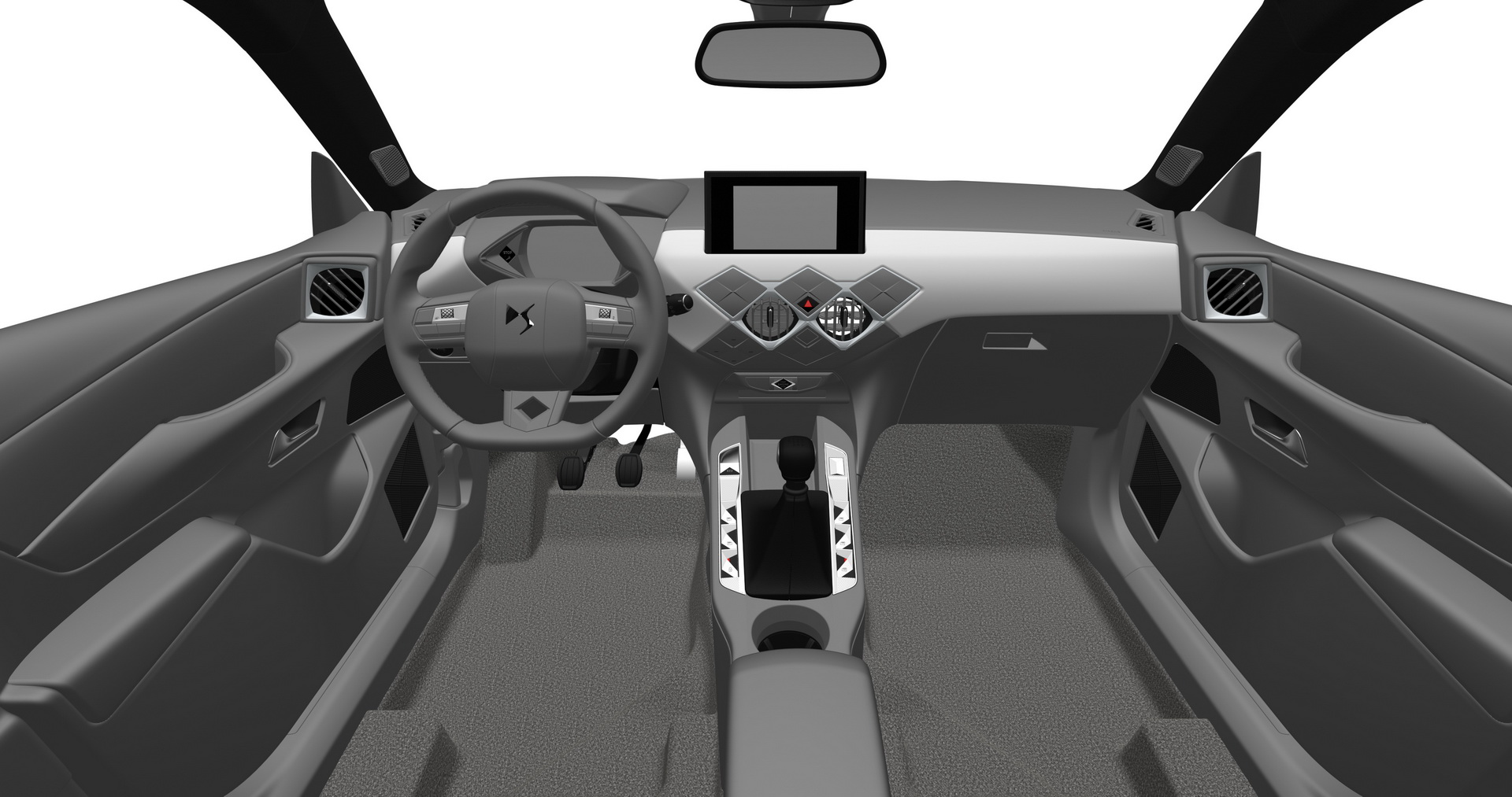 The interior adopts a simple form that features many diamond-patterned details, including the center air-vents that appear to be mounted under three sets of buttons. The center console is arranged in the same style with the DS7, meaning jewellery-like controls surrounding the shifter. The instrument cluster will be digital while the infotainment system is mounted on the dash like a tablet, a feature that was first seen in a previous scoop.
