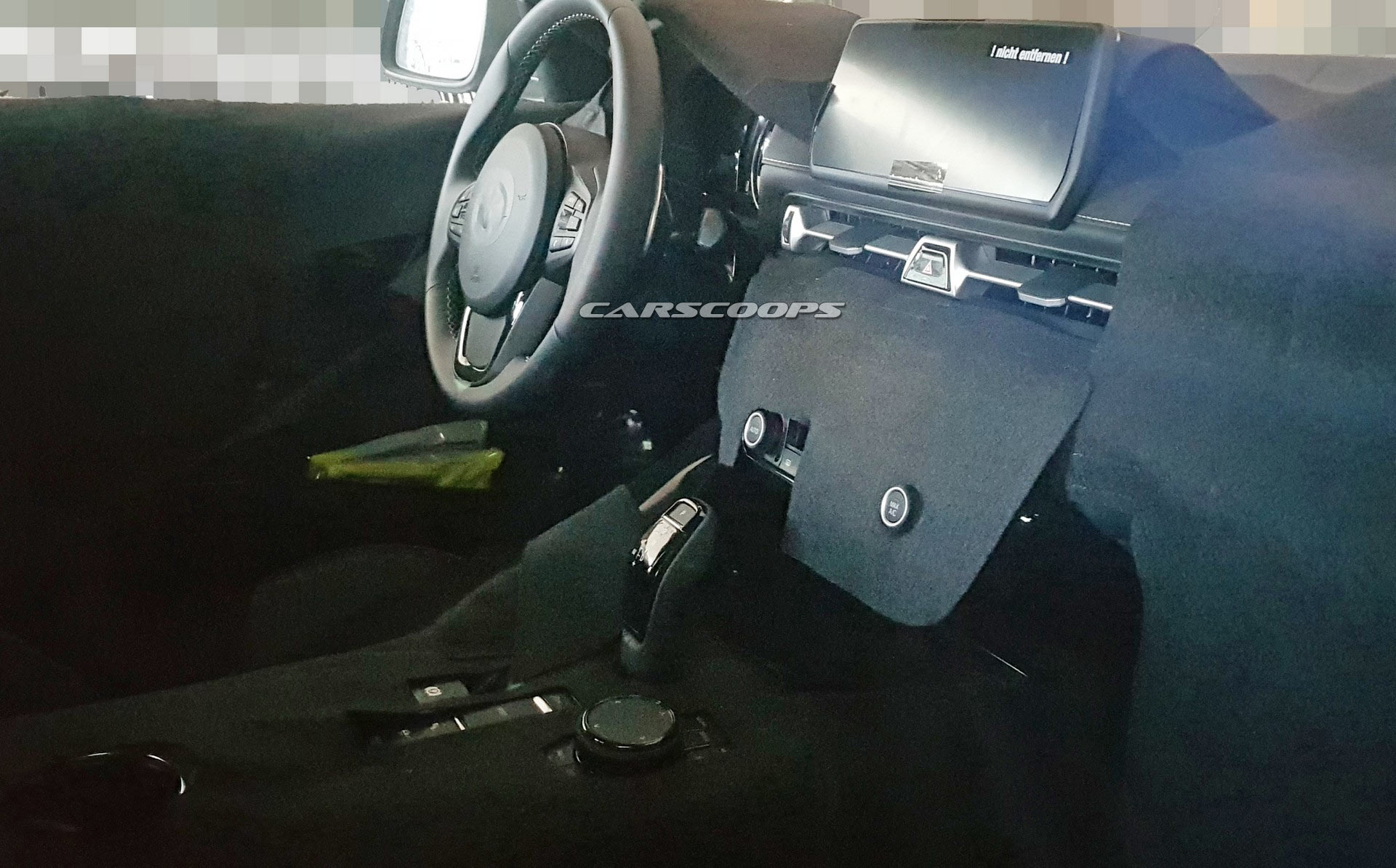 While Toyota is keeping details under wraps, spy photographers managed to get a better look at the car’s interior later today. The dashboard is heavily disguised, but the BMW connection is clearly evident as the prototype features a familiar steering wheel with a Toyota logo hidden beneath some black camouflage. Another tell-tale clue is the iDrive controller that is located next to a BMW-style shifter.