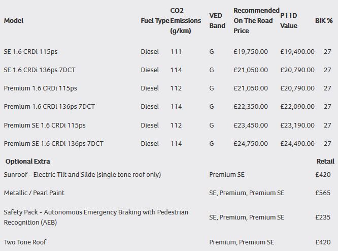 Spending £19,750 will land you the entry-level SE 1.6 CRDi 116 PS version with the 6-speed manual transmission. At the other end of the spectrum is the Premium SE 1.6 CRDi 136 PS model with an automatic transmission, which will set you back at least £24,750, about as much as the Kona Electric.