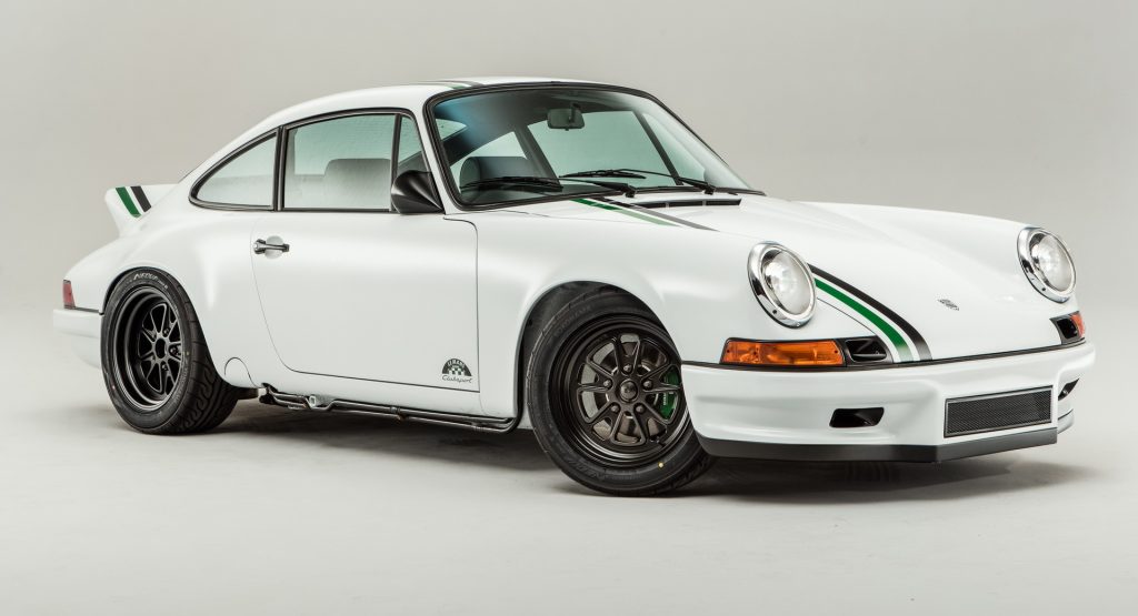 Power comes from an air-cooled, 300hp 3.4-liter flat-six that features a new cross shaft-less ITB injection system with a GT3 RS plenum, a programmable ECU mapped in house, RS specification camshafts, a lightened and balanced crankshaft, lightweight conrods and a lightweight flywheel mated with a Getrag G50 gearbox and a limited slip differential.