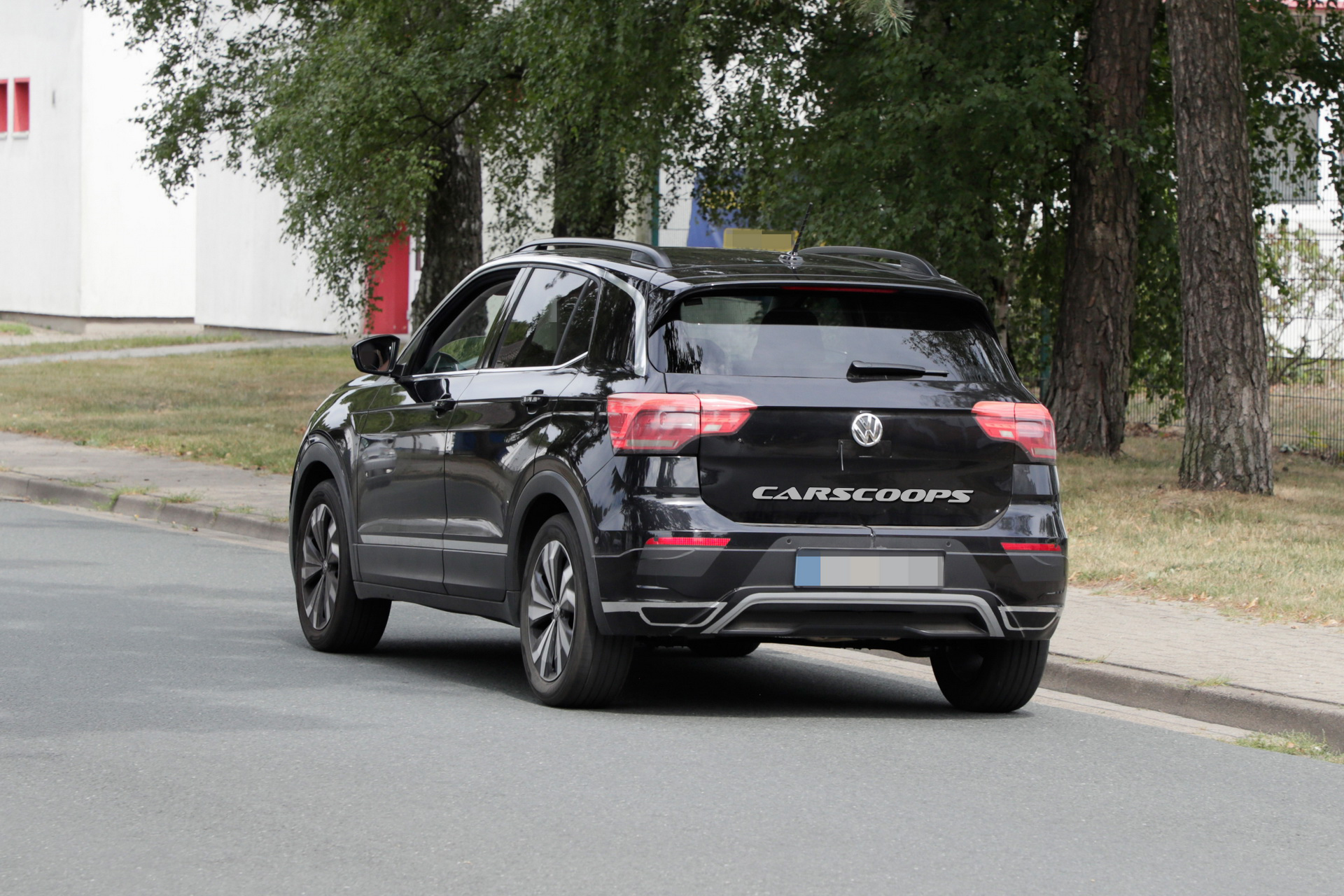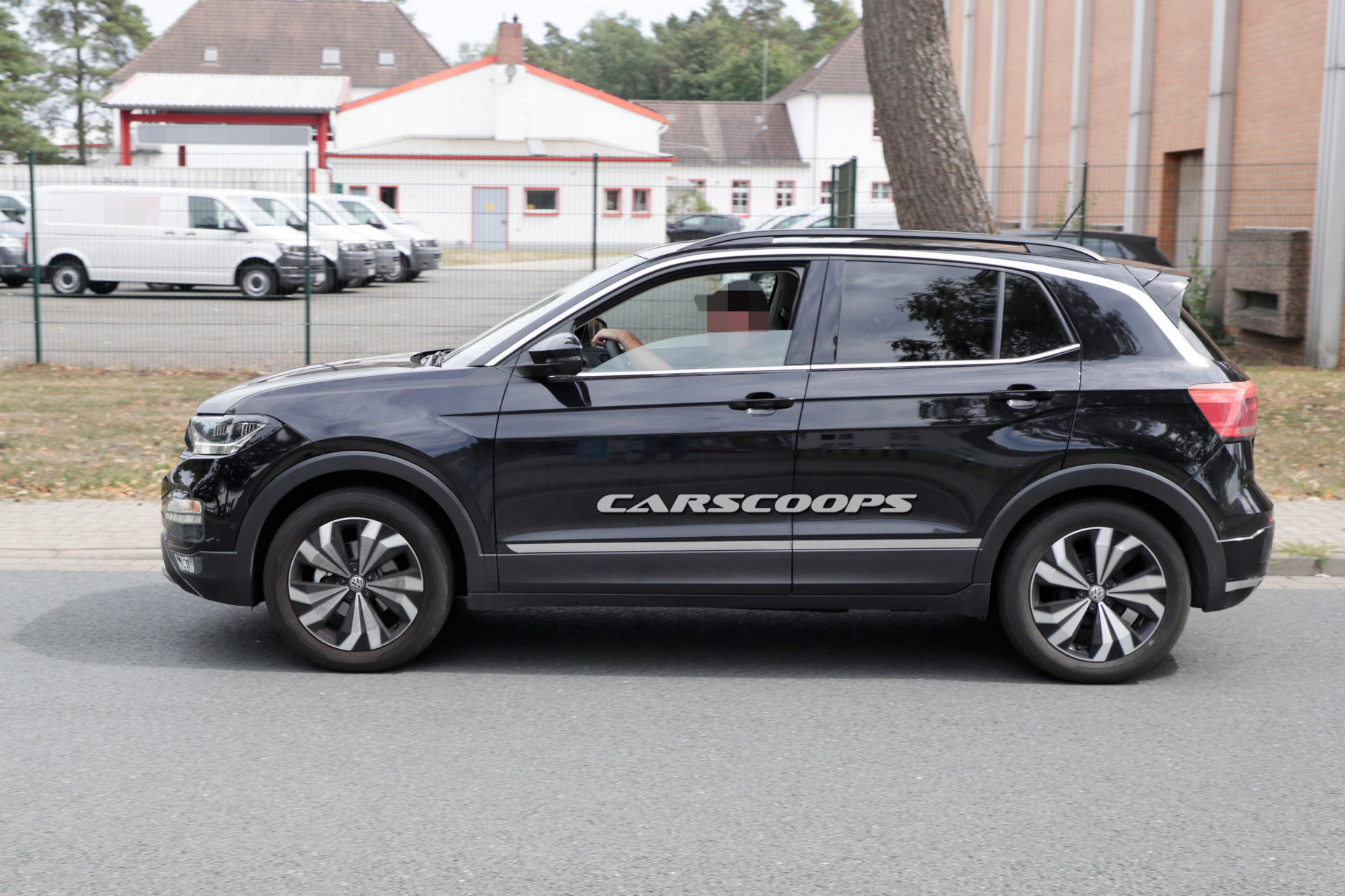 Set to make its debut in October, the VW T-Cross test car pictured here tries to disguise itself in places as the bigger T-Roc, including the cladding on the bumpers and lights all around. According to official sketches, the final production version will feature square-shaped taillights connected with a light bar across the rear end.