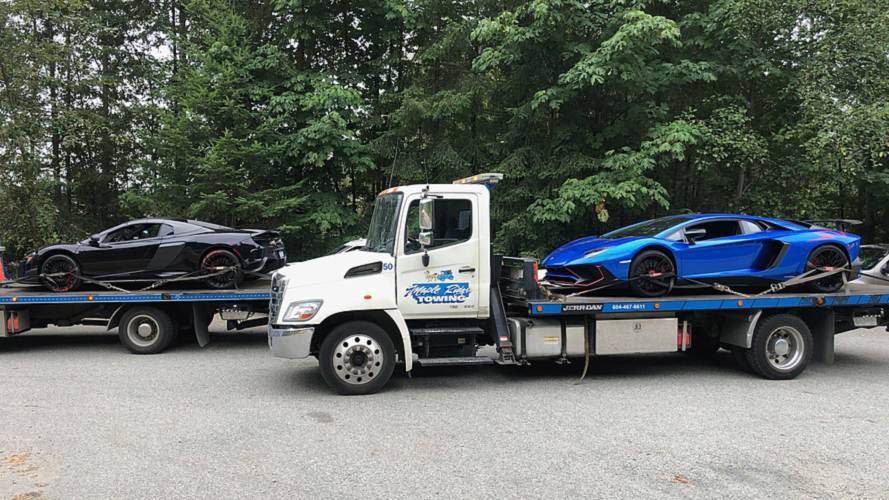 According to the Royal Canadian Mounted Police (which patrols many of the country’s highways), the drivers of this black McLaren 675LT Spider and blue Lamborghini Aventador SV were clocked on August 2 driving 138 kilometers per hour (86 mph) on a stretch of the Lougheed Highway in British Columbia where the indicated limit is 80 km/h (50 mph). As Motor1 reports, they were headed to a private track event at Mission Raceway, and one was equipped with a radar detector.