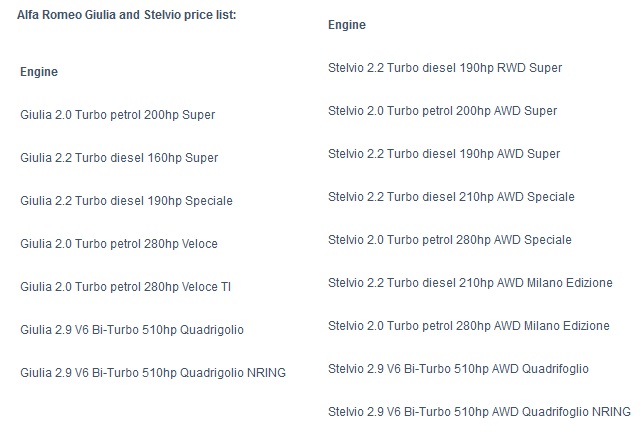 Pricing for the 2019 Giulia starts from £32,490 ($41,300/€36,310) in the United Kingdom, the new Veloce Ti will burn a £45,500 ($57,838/€50,850) hole in your pocket, and the base 2019 Stelvio is offered with rear-wheel drive from £35,990 ($45,749/€40,222).