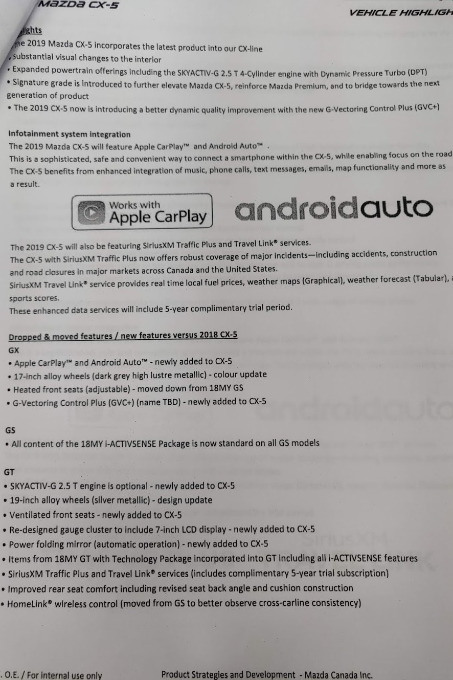Besides the performance changes, the document hints at “substantial visual changes to the interior.” That’s pretty vague, but the CX-5 GT will have a redesigned instrument cluster with a seven-inch color display. The range-topping model also features more comfortable rear seats with a new backrest angle and better cushioning.