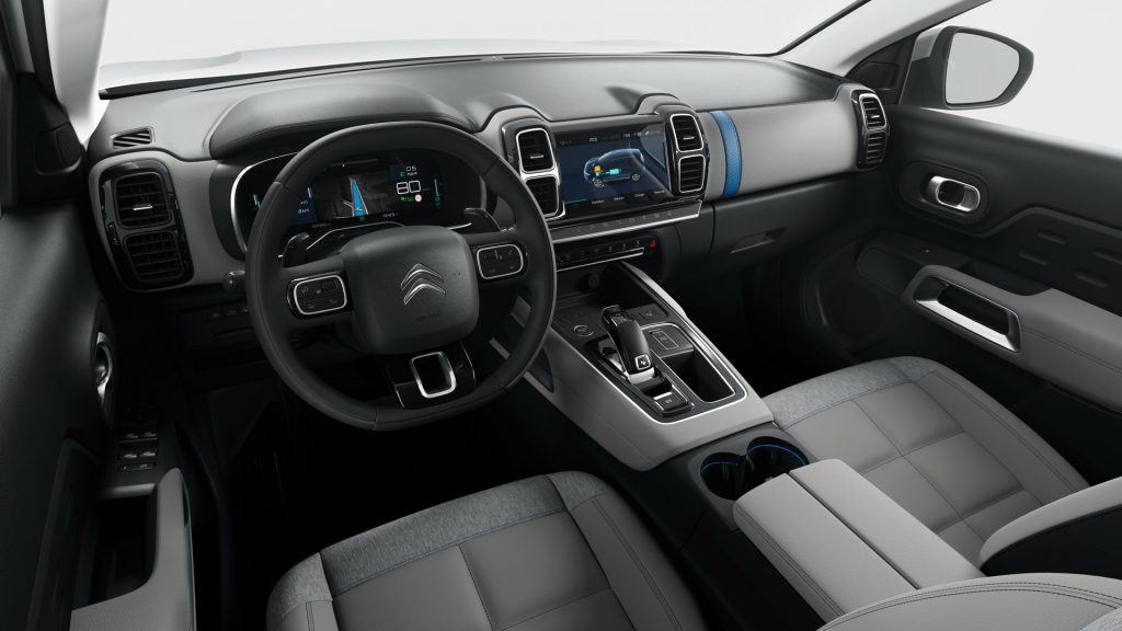 Differences between the plug-in hybrid and the rest of the C5 Aircross’ range are kept to a minimum, with the cabin now featuring hybrid-specific displays on the instrument cluster and infotainment system.