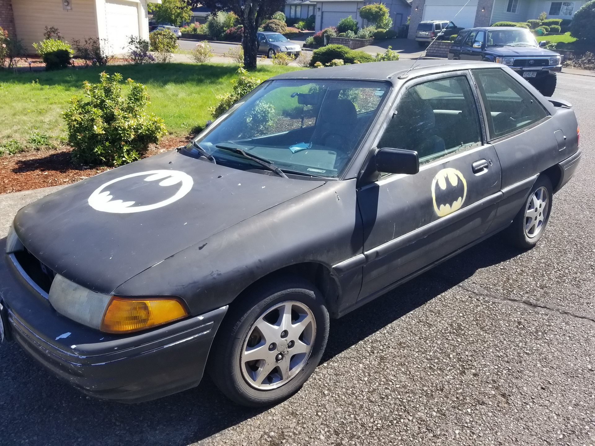 So if this second-generation matte grey Ford Escort was anybody’s idea of a worthy car for a bunch of Batman logo stickers, then all we can say is: “Let the jokes begin!”