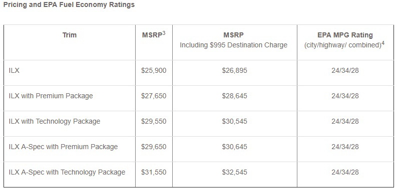 Every ILX model is also coming with the AcuraWatch suite of active safety and driver assistance systems, and that includes Collision Mitigation Braking System with Forward Collision Warning, Lane Keeping Assist, Adaptive Cruise Control, and Road Departure Mitigation with Lane Departure Warning.