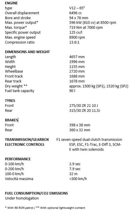Both are equipped with Ferrari’s most powerful naturally-aspirated V12 ever made, the 812 Superfast’s 6.5-liter unit. In the SP cars, the 12-cylinder engine makes 810 PS (799 hp) at 8,500 rpm and 719 Nm (530 lb-ft) of torque at 7,000 rpm — 10 PS and 1 Nm more than in the donor car.