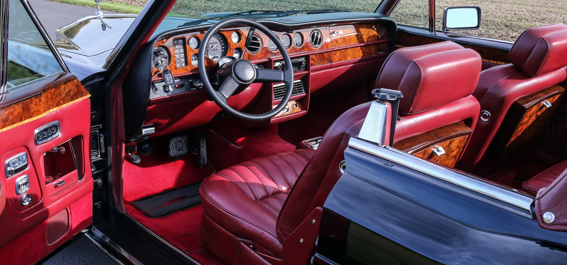 The Corniche was imported to the U.S. by Rolls-Royce on November 13, 1984, and presented to Sinatra for his 70th birthday by fellow Rat Pack members Sammy Davis Jr. and Dean Martin. Its Mason Black coachwork and red leather interior with rear picnic tables made for a rare sighting on a convertible Rolls-Royce model.