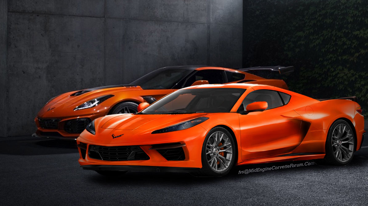 Another render shows the upcoming mid-engine Corvette in the company of the current ZR1. It’s remarkable how unlike the two cars appear due to their totally different layouts.