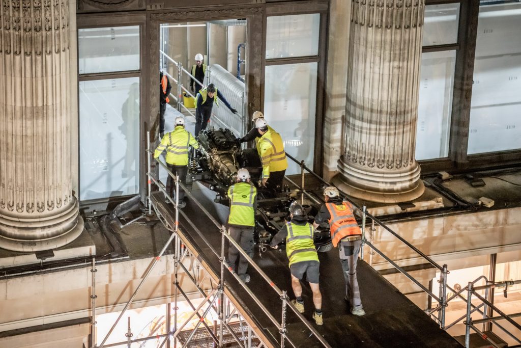 What’s interesting is that the car was actually inserted into the store through a first-floor window with the help of a crane as a kit of parts and then was reassembled on the menswear floor in full view of the public by three specialist technicians and five workers in just over four days.