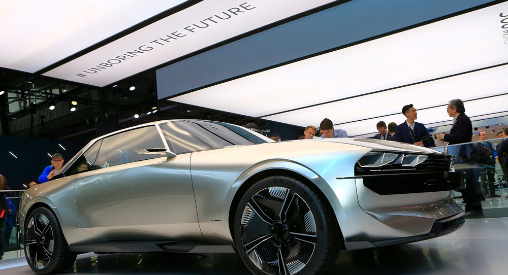 Case at hand: Peugeot’s e-Legend that is one of the highlights of the carmaker’s Paris show stand.