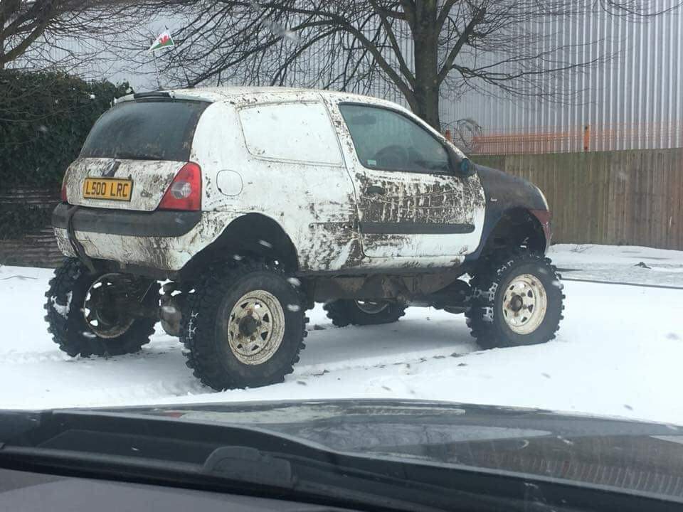 While this overgrown Renault Clio is by no means a sports utility vehicle, it is technically a “crossover”… between a small hatchback and a baby monster truck – and, by the looks of it, way more capable than almost any SUV. It’s also somewhat evident that whoever built it, did so in order to actually drive and get it dirty, not look good on the school run.