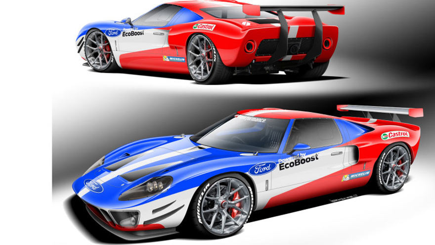 As for the Future Forty’s design, it uses a largely identical red, white, and blue livery to what the Ford GT competed with when it took class victory at the 24 Hours of Le Mans in 2016. Viewed from the front, the car has similar headlights to the modern GT, as well as a pair of large air vents on the hood. Elsewhere, much of the vehicle’s design is very similar to the original GT40. Certain parts that stand out are the large rear wing and modern taillights.