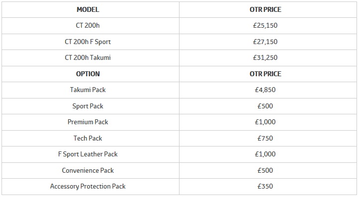 The Premium Pack can also be specified to the entry-level CT and comes with rear privacy glass, smart entry, front and rear parking sensors, heated front seats and Tahara upholstery, for £1,000 ($1,274/€1,125).