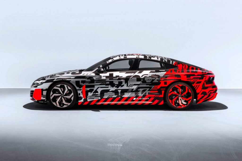 As with the Tesla Model S it’s directed against, the e-tron GT is not technically a sedan. It’s a five-door liftback with sporty styling. Notice the sloping roofline, the low stance, huge rear diffuser, and Audi Sport lettering.