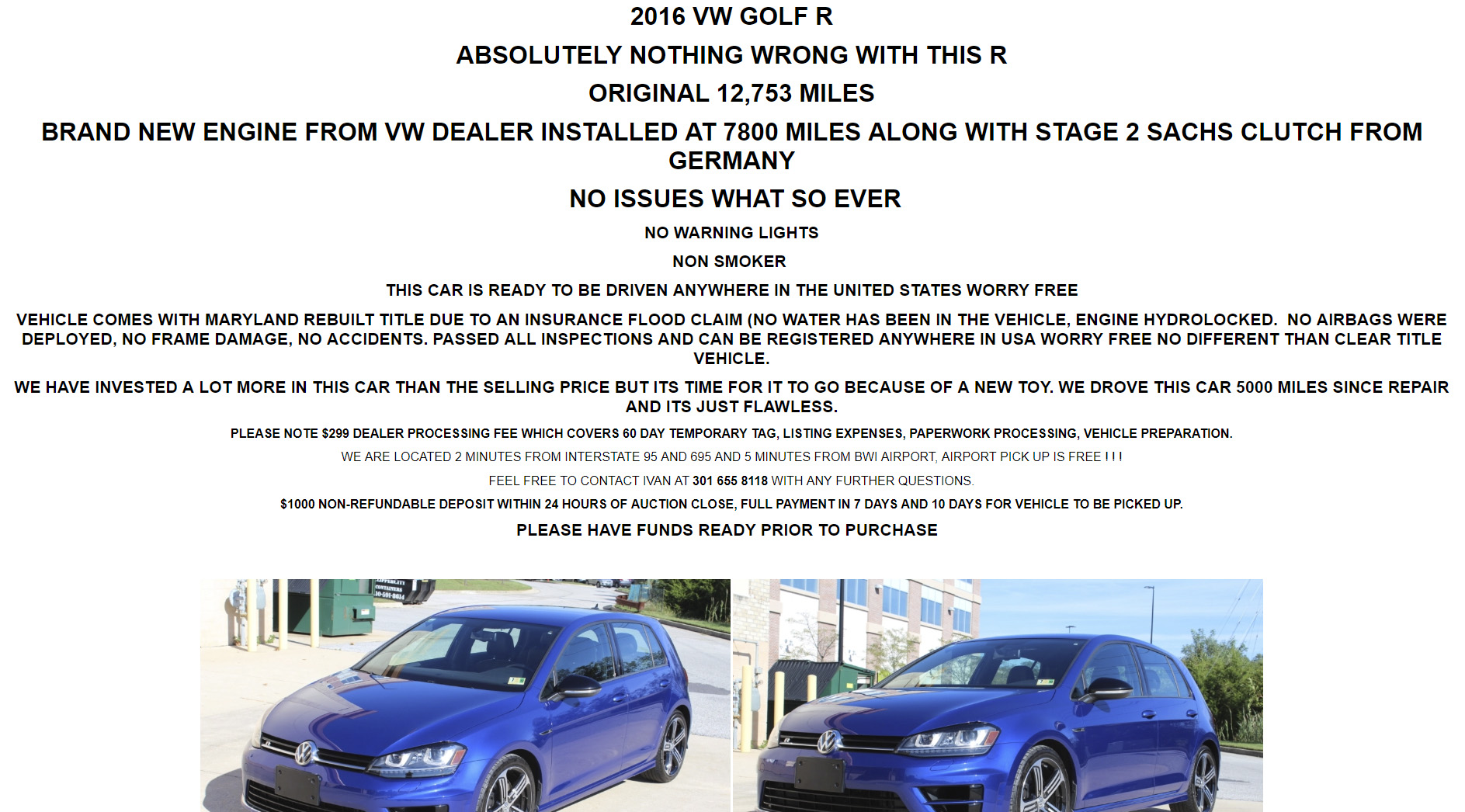That’s a pretty big red flag, but the listing says the car has since been equipped with an all-new engine and recently traveled 5,000 miles (8,046 km) without issue. That requires a pretty big leap of faith from would-be buyers, but the savings are significant. Other 2016 models costs thousands more and have significantly higher mileage.