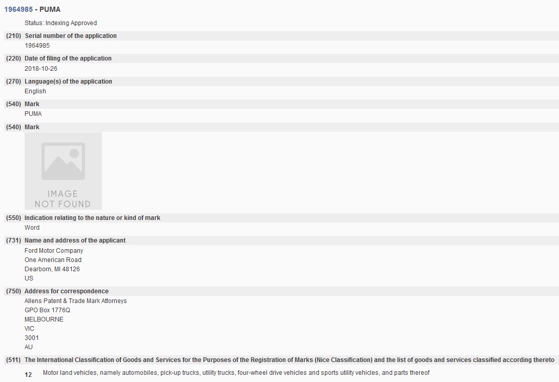 Ford has applied for a couple of trademarks for that moniker in Australia and New Zealand. Discovered by GoAuto at the Global Brand Database, they refer to a wide range of models, including pickup trucks, SUVs and four-wheel drive vehicles.