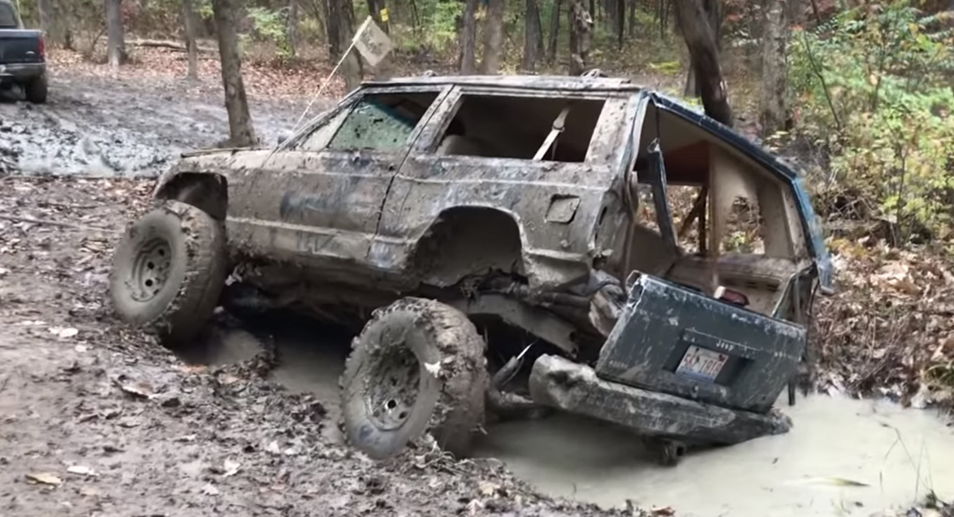 The XJ was a capable off-roader, but this particular model got its trail rated badge revoked in speculator fashion. While the clip doesn’t show the moment when disaster struck, you can see something catastrophic happened when the driver attempted to get out of a mud hole.