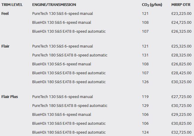 Three trim levels will be made available in the Feel, Flair and Flair Plus, each getting a wide range of personalization options to go with the grand total of 30 exterior color combinations. As for powertrains, a range of Euro 6.2 PureTech petrol and BlueHDI diesels are available, as is the latest-gen 8-speed automatic gearbox.
