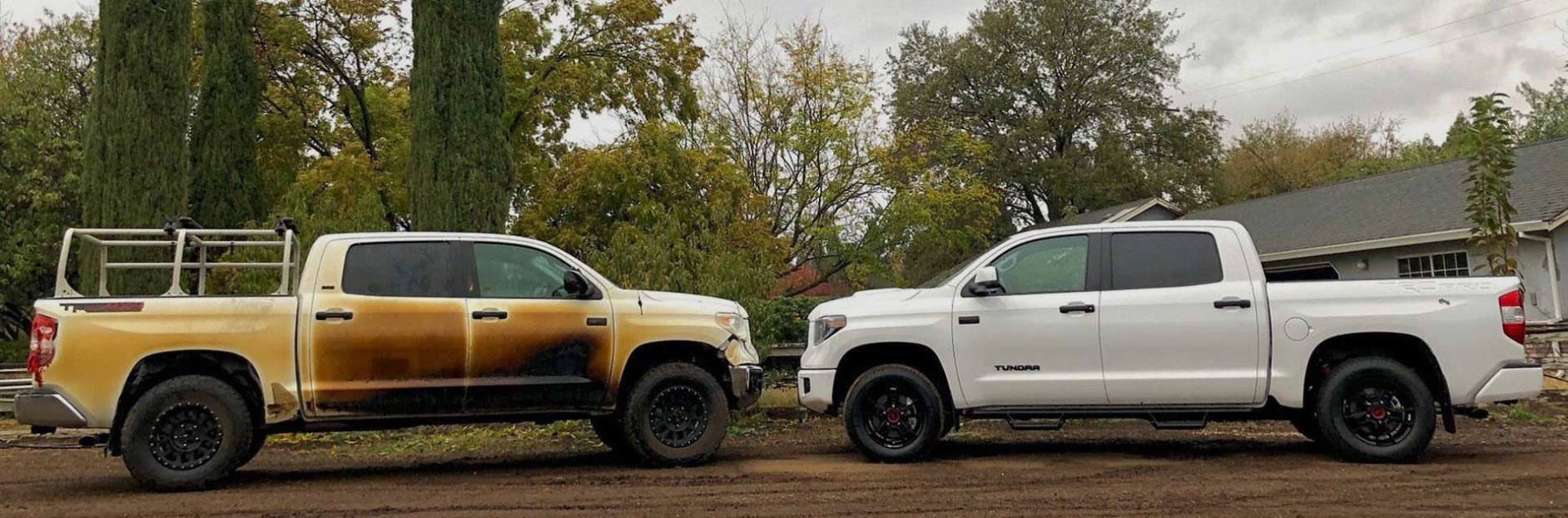 In fact, images which Pierce shared on Instagram revealed that much of his modified Tundra was singed and a number of plastic parts, such the wing mirrors and the front bumper, started to melt.