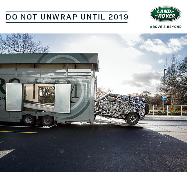 Showing the model being unloaded from a trailer, the teaser says “Do not unwrap until 2019.” This suggests the Defender will be unveiled next year, but Land Rover also hinted additional information will be released on December 27th.