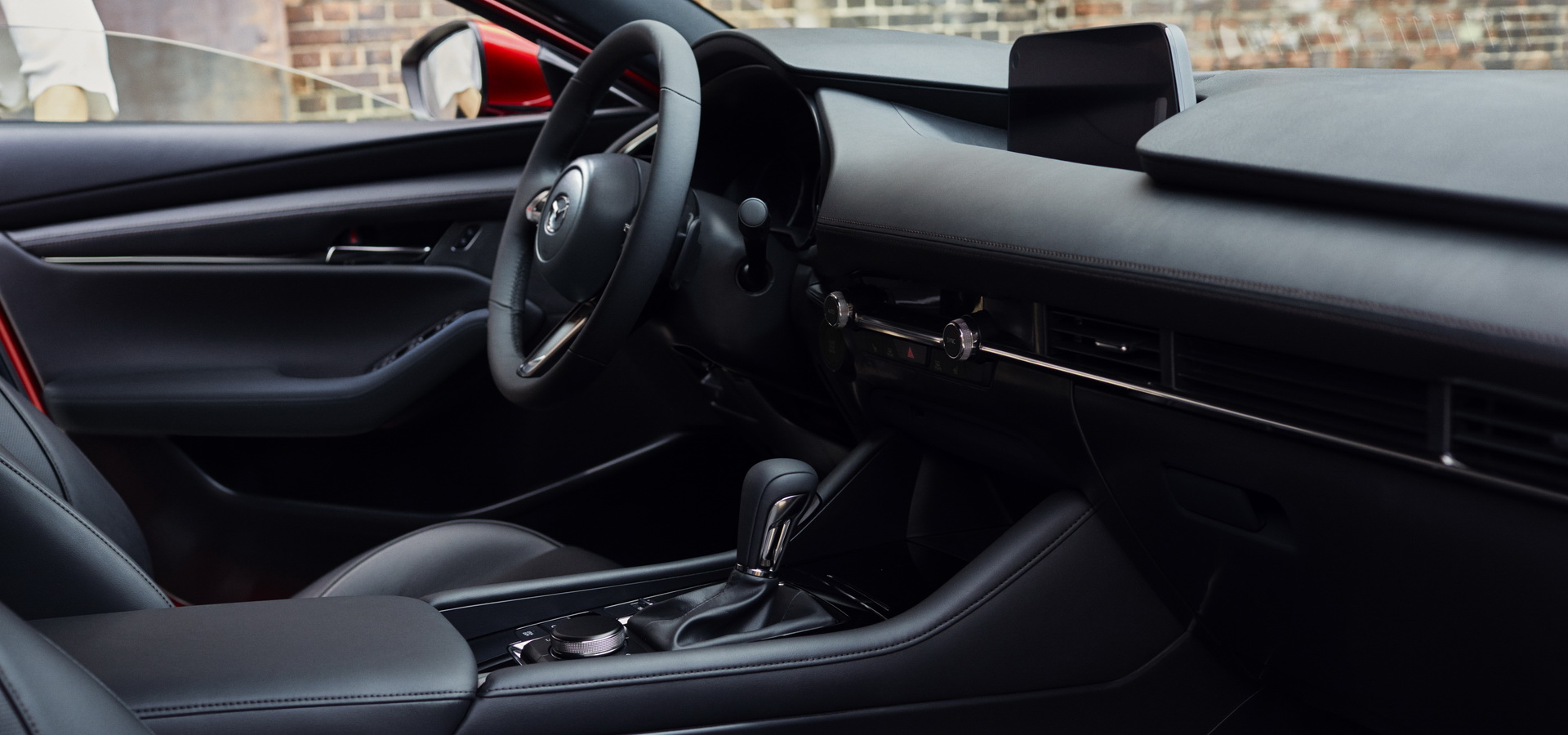 As for the interior, there’s probably not much we can say in favor of the 2018 Mazda3 over the all-new 2019 one. The automaker adopted a “less is more” approach, while utilizing better materials in order to make the cabin look (and hopefully feel) more premium. Features include the freestanding 8.8-inch infotainment display, new steering wheel, lengthened armrest, re-positioned cup holders and a gearbox surround which “incorporates a laser-engraved black layer covered by a second clear layer”, resulting in a glossy black finish with “deep transparency”. It’s basically a more stylish version of gloss black.