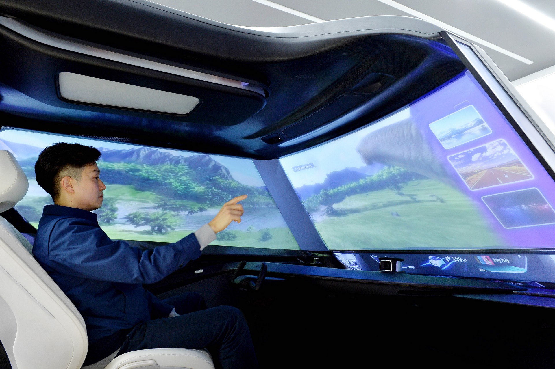 Set to debut at CES next month, the Autonomous Driving Interior Concept has been designed for a world dominated by vehicles with Level 4 and Level 5 autonomous driving technology. Since drivers no longer have to pay attention to the road in certain circumstances, the concept has been equipped with “windshield display technology.”